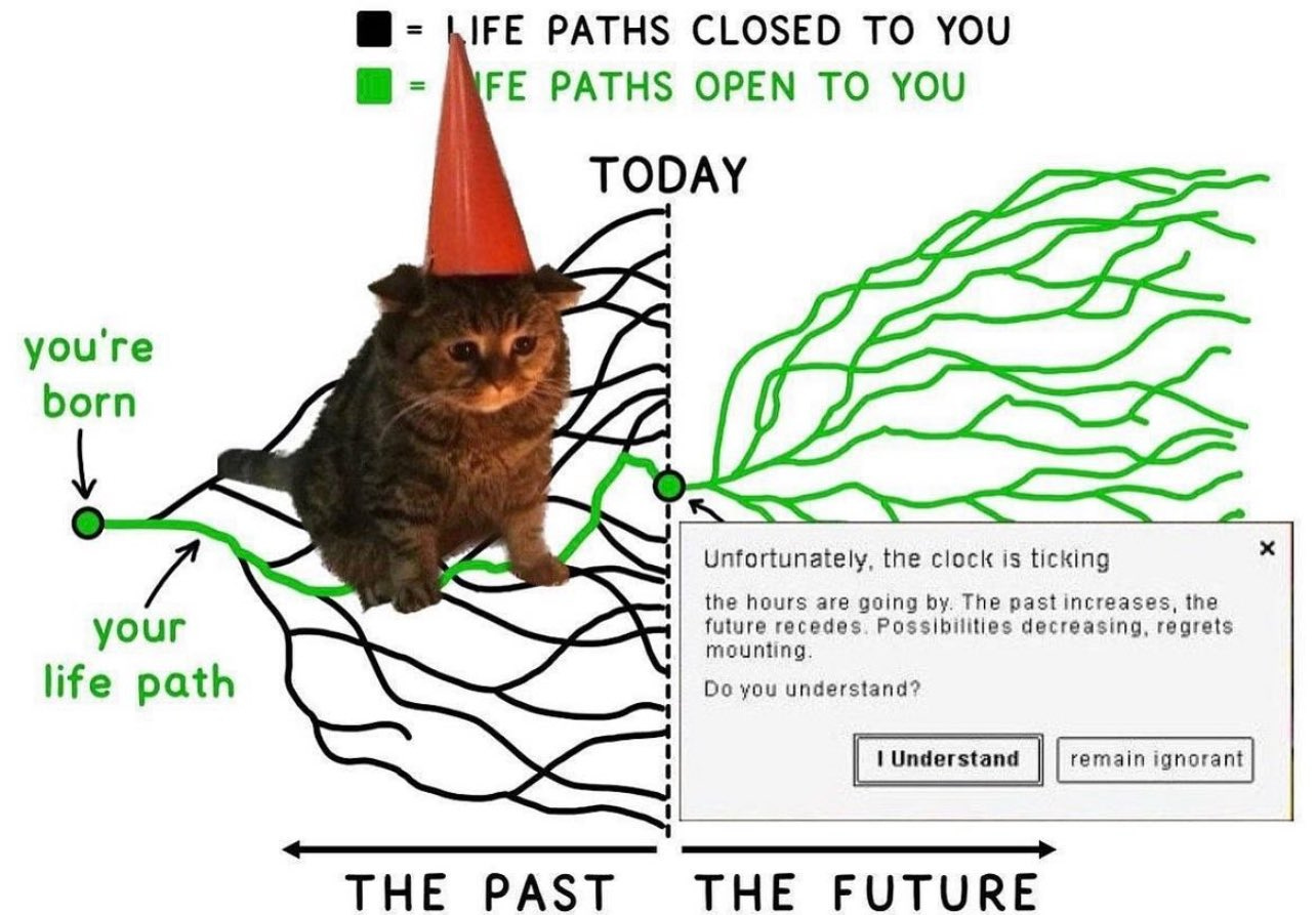 The arrow of time has only one direction: the future becomes the present, and the present becomes the past.