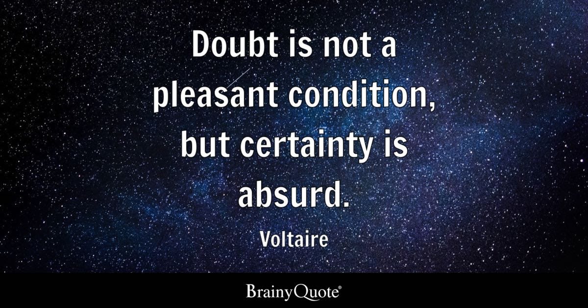 I'd rather be certain of uncertainty than uncertain of certainty.