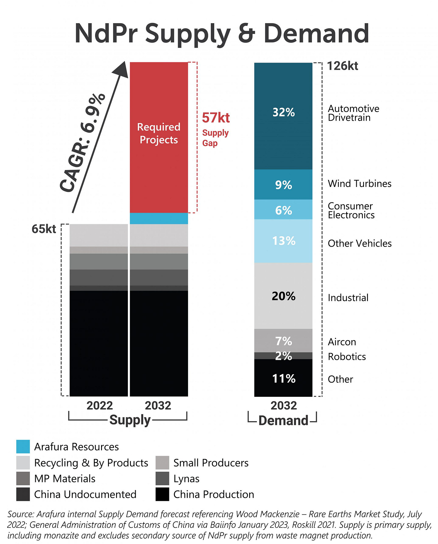 Let’s look at the projected NdPr demand and supply dynamics (chart via Arafura):
