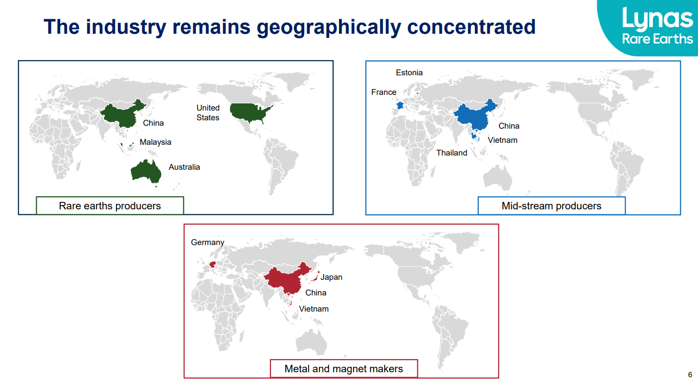 The REE market is highly concentrated. Only two companies outside China run producing REE mines, Lynas Rare Earths in Australia and MP Materials in the US.