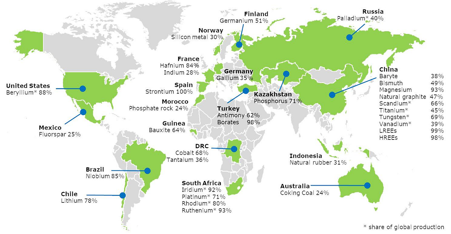 The US has the geographical advantage of making dumb political decisions without significant material repercussions. Moreover, the US is the top global exporter of LNG and crude oil. On the other hand, The US fails to secure its critical metals supply chains.