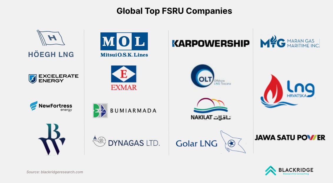 The FSRU market is mid-size compared to the FPSO and FLNG. There are currently 45 FSRU plants in operation. The top rank companies in the industry are shown in the following image: