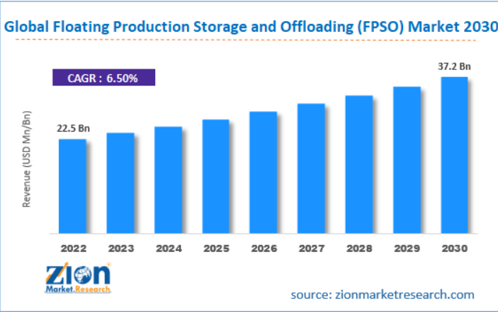 The market for FPSOs is poised to grow at 6.5% per year by the end of the current decade. Image via Zion Research.