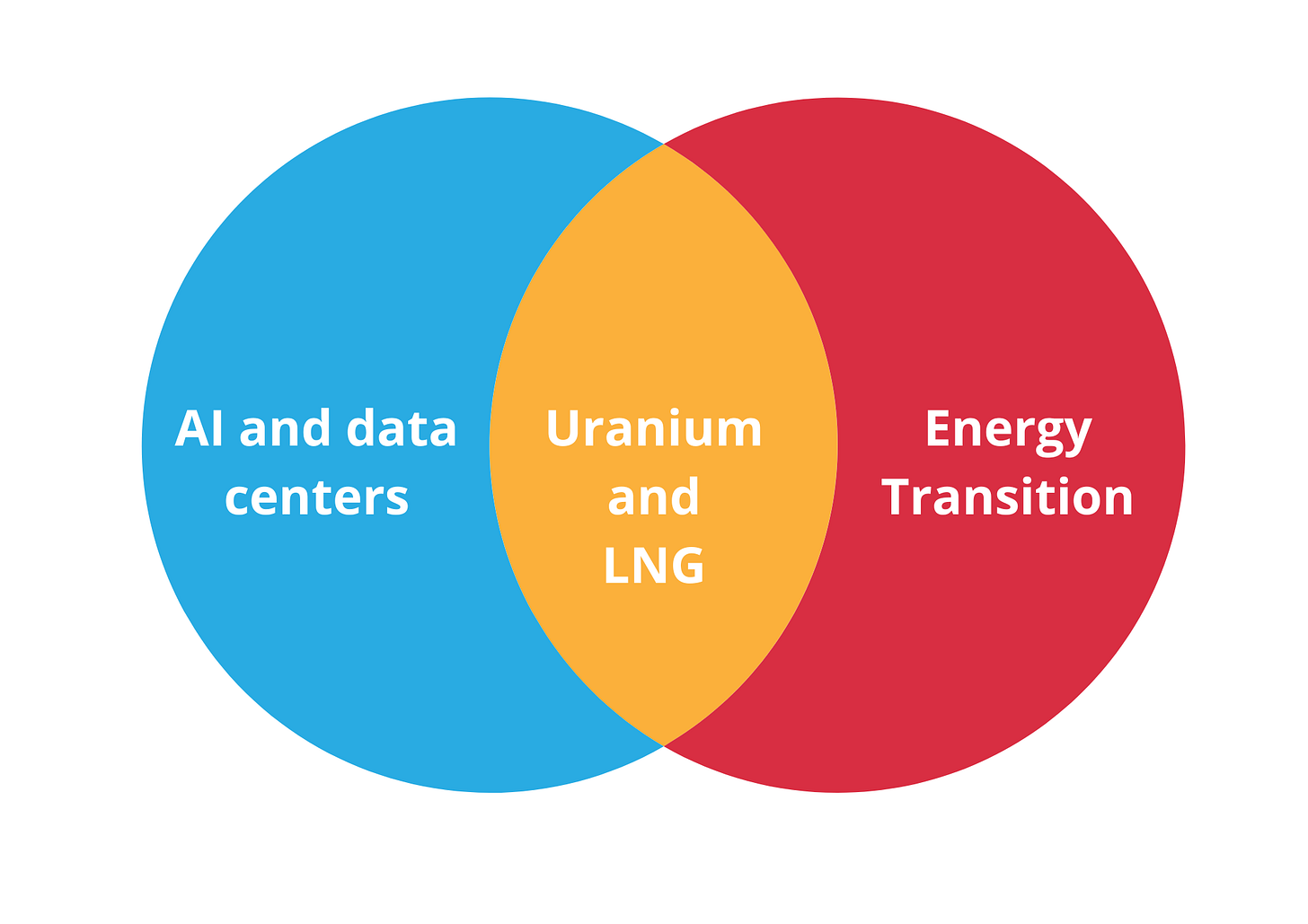 I am long AI and green energy. You wonder how. Basically, by investing in energy. Datacenters make the AI revolution possible. They consume enormous amounts of energy. On the other hand, we have an energy transition. Therefore, we need energy-dense fuel combined with minimum emissions. Uranium and LNG are the answer.