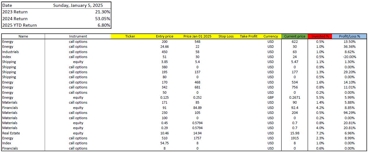 Paid subscribers will receive a weekly update every Sunday with my plans for the next week and a revised table with my positions. The weekly update will include all the required data: entry price, stop loss, take profit, and position sizing.