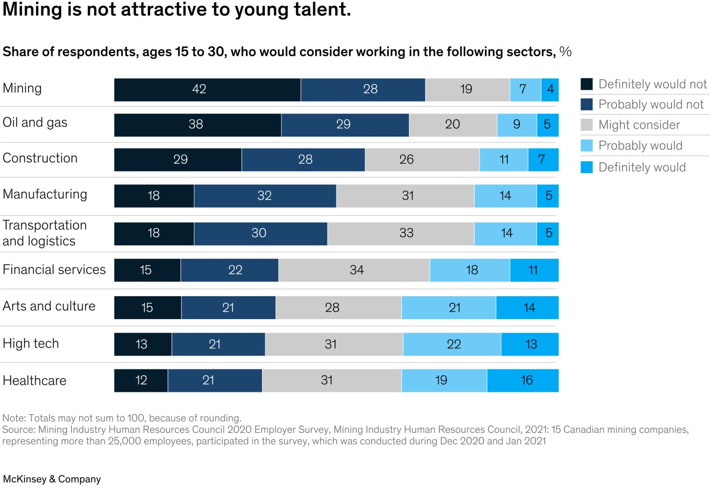 The lack of interest in the industry is very pronounced. The problem is common for all extractive businesses: oil and gas, precious metals, and base metals. Besides that, it is not unique to Canada.