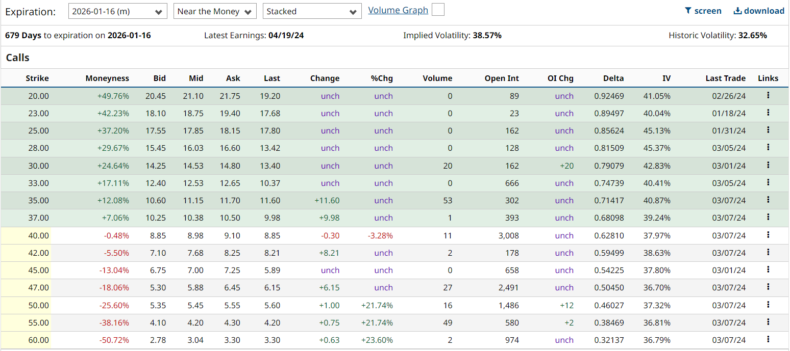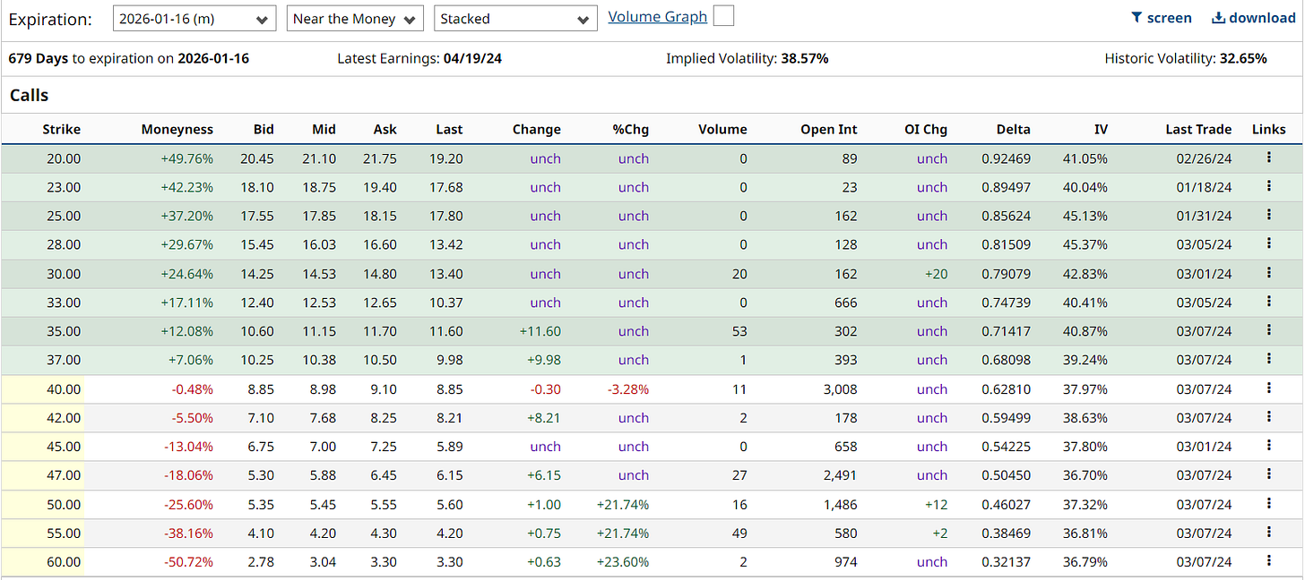 I don't have deep out of the money LEAPS on FCX, but it's an interesting idea. DOTM LEAPS lose less theta decay and they have a better ROI on the upside. If the share price goes down, it's possible to buy an at the money strike that's lost more dollar amount than the DOTM strike.