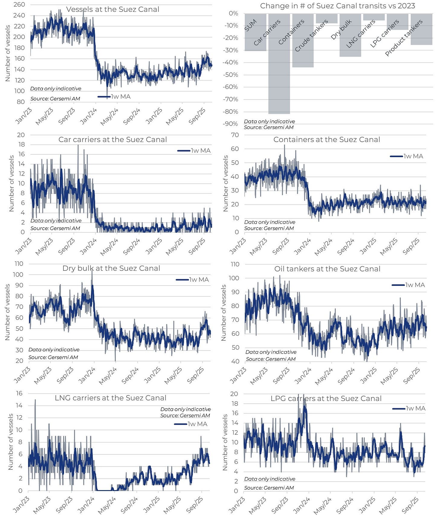 One exogenous shock is gone only to make way for a new one. The Red Sea might gradually come back into service, reducing the pressure on the supply chains. However, the port fees game takes its place as a catalyst for increased tonne-mile demand.